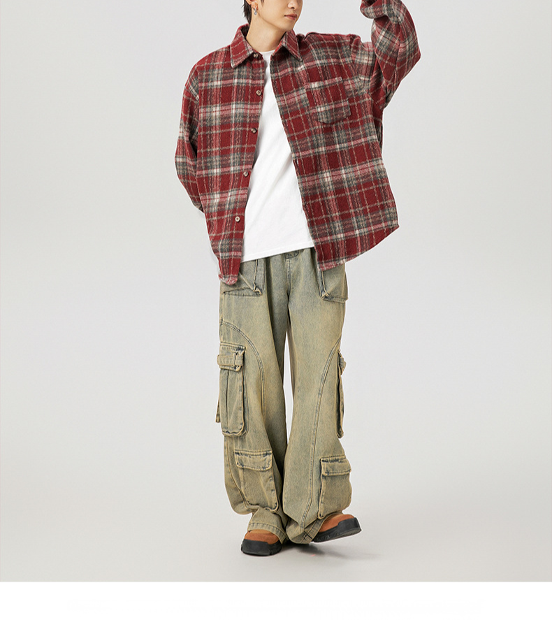 アメリカン・レトロ・カップル・ジャケット ゆったり長袖シャツ メンズ レディース ラペルポケットシャツ