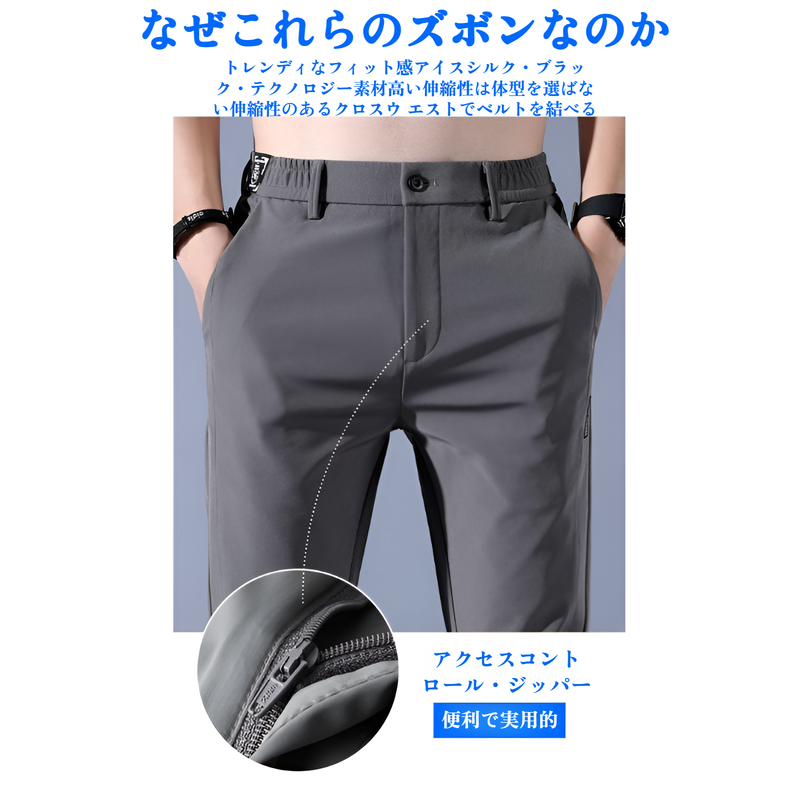 メンズ ロングパンツ 夏服 冷感パンツ アイスシルクパンツ 接触冷感 薄手 涼しい イージーパンツ ストレッチ 夏 春 秋