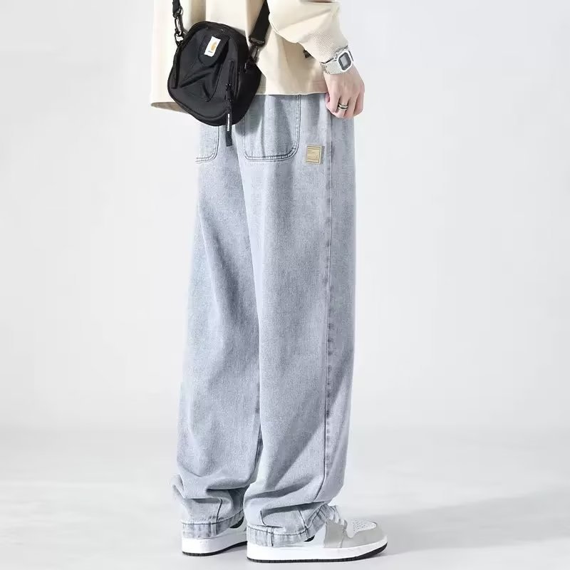 メンズアメリカンウォッシュジーンズ、ルーズストレート、トレンドブランドワイドパンツ、アメリカンハイストリート万能カジュアルロングパンツ